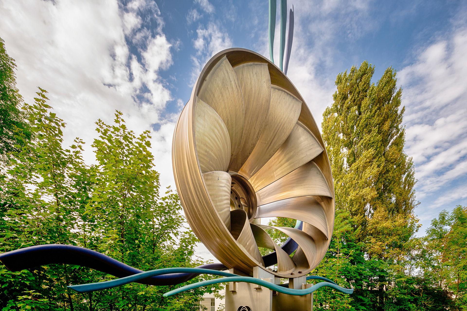 Windenergie gilt als tragende Säule der Energiewende und hat sich in den vergangenen Jahren weiterentwickelt. Mithilfe einer Turbine kann die Fließgeschwindigkeit von Wasser zur Stromgewinnung genutzt werden. © Adobe Stock, Markus Leser